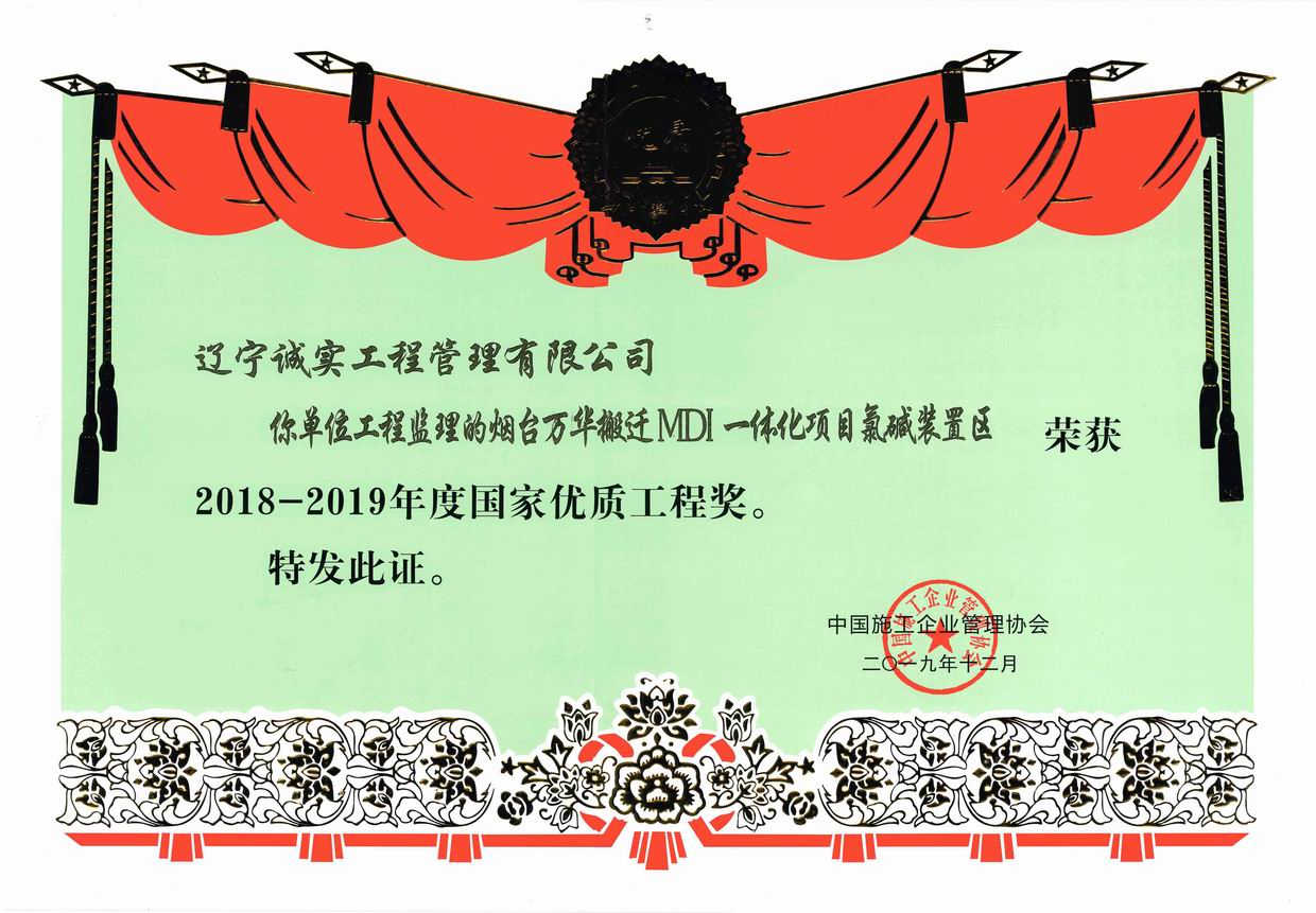 2018-2019年度國家優質工程獎(煙臺萬華搬遷MDI一體化項目氯堿裝置區)