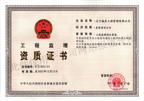 “工程監理綜合資質”它是工程監理行業中的最高資質,它既是榮譽、也是挑戰;既是動力、也是壓力。這一金字招牌將為我公司進一步增強整體實力,拓展業務、加速發展創造了有利的條件。我們要珍惜這個來之不易的榮譽,將以此為契機,總結經驗、再接再厲、向著更加美好的未來砥礪前行。