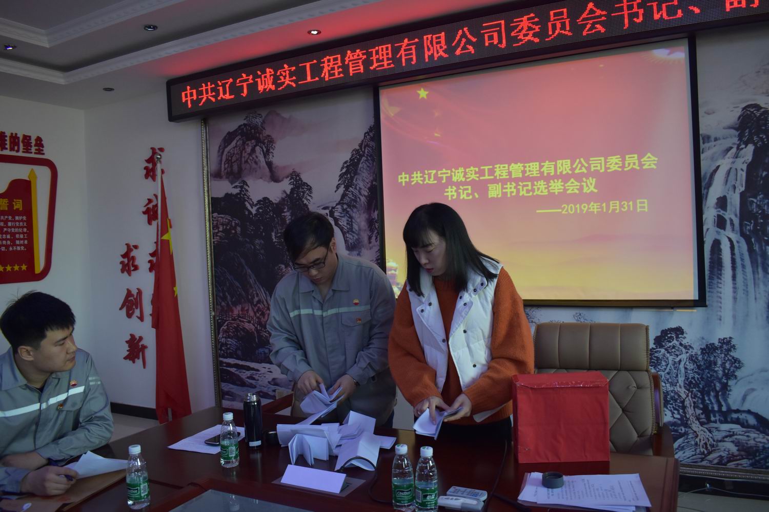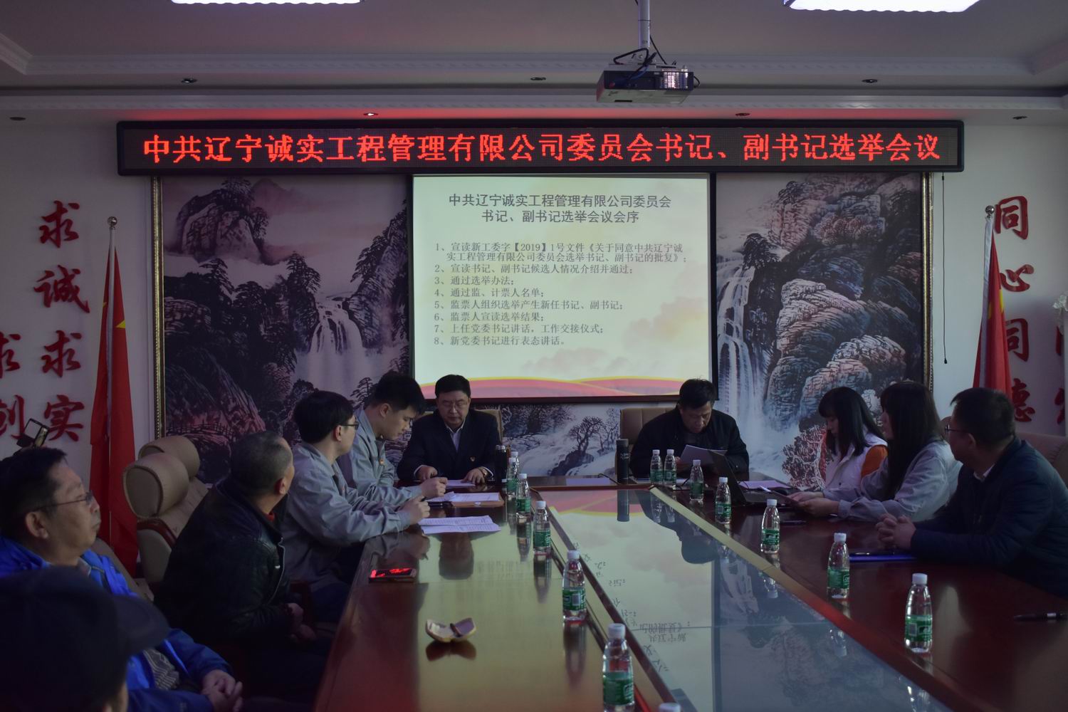 會(huì)上首先由張冠楠同志宣讀了新工委字【2019】1號(hào)文件《關(guān)于同意中共遼寧誠實(shí)工程管理有限公司委員會(huì)選舉書記、副書記的批復(fù)》,接著趙紫伊同志向大會(huì)介紹書記、副書記候選人情況并通過,鄧戎龍同志宣讀選舉辦法并通過,大會(huì)通過了尋藍(lán)春同志為本次選舉工作的監(jiān)票人,鄧戎龍、趙紫伊兩位同志為本次選舉工作的計(jì)票人,在監(jiān)票人尋藍(lán)春的組織下,參會(huì)黨員差額選舉產(chǎn)生了中共遼寧誠實(shí)工程管理有限公司新的書記和副書記。選舉結(jié)果:趙劍平為黨委書記,任潤東為黨委副書記。目前新的黨委由5名委員組成,分別是任潤東、張冠楠(女)、趙劍平、馬駿、劉興善。其中設(shè)書記1名,副書記1名。老黨委書記講話,新、老兩位書記進(jìn)行工作交接儀式,最后新黨委書記在大會(huì)上作了表態(tài)發(fā)言。