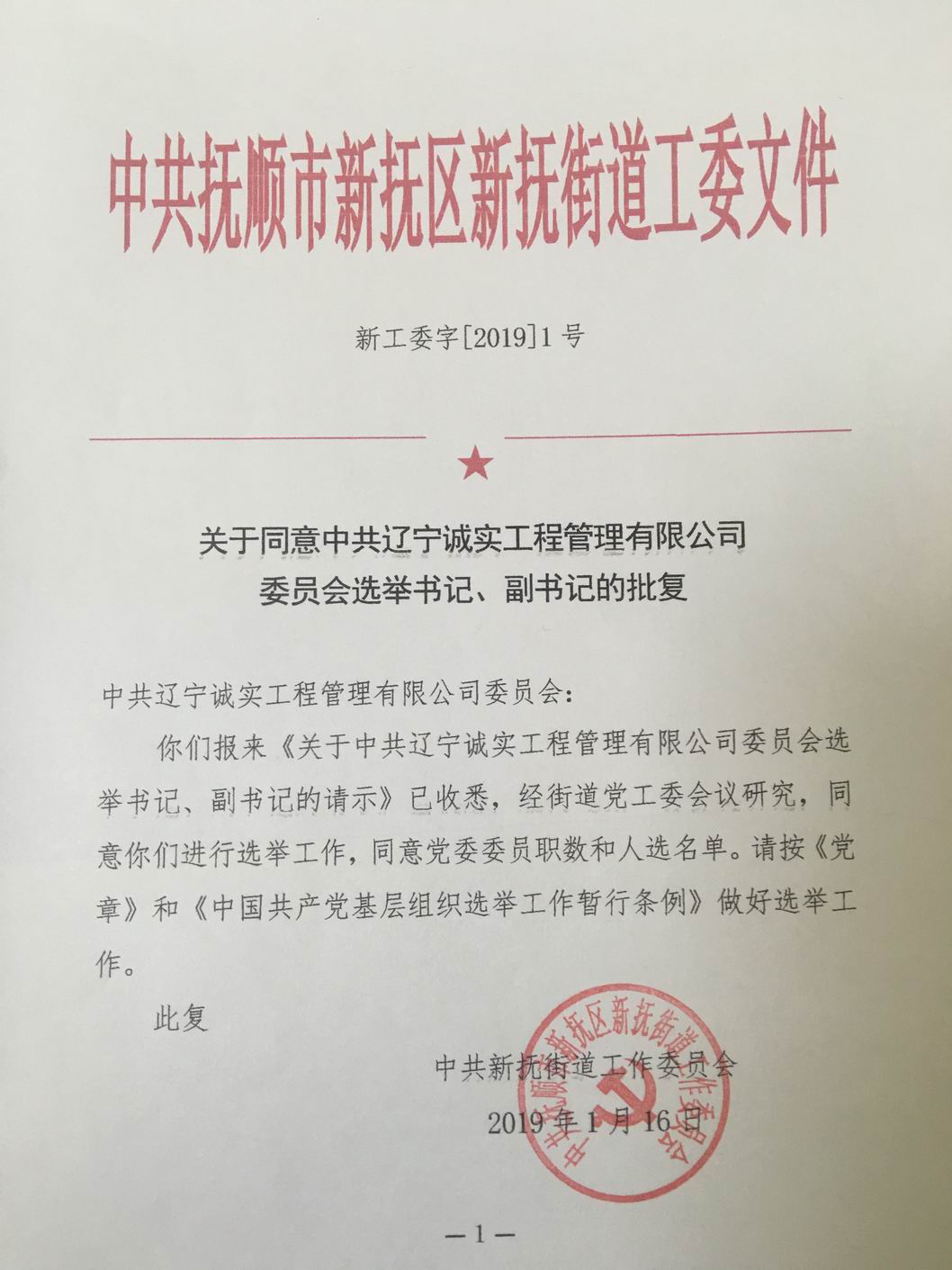 我公司第一屆黨委于2013年6月選舉產(chǎn)生,2018年6月任期屆滿,根據(jù)黨章有關(guān)規(guī)定于2018年2月7日進(jìn)行換屆選舉產(chǎn)生了第二屆黨委,第二屆黨委由7名委員組成,其中設(shè)書記1名,副書記1名。2019年由于黨委書記孫學(xué)良同志及副書記馮玉琢同志從我公司退休,委員數(shù)變?yōu)?人,根據(jù)黨章有關(guān)規(guī)定應(yīng)重新進(jìn)行書記、副書記的選舉。我公司于2019年1月10日申請換屆,并于2019年1月16日得到批復(fù)。