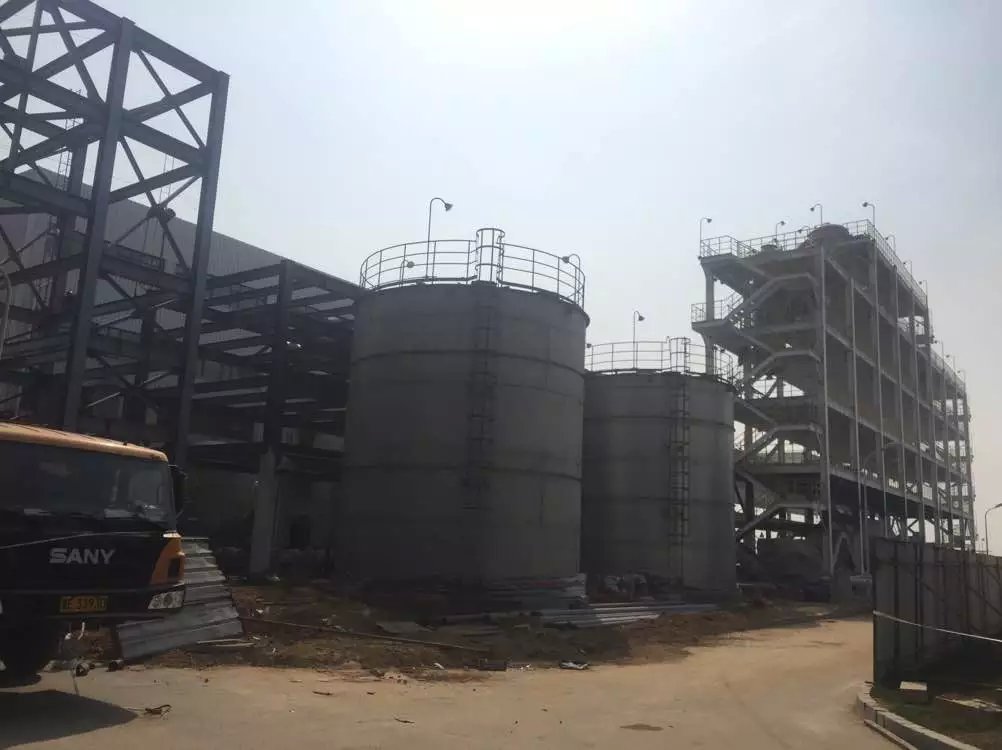 淡鹽水脫氯儲罐、構架安裝現場
